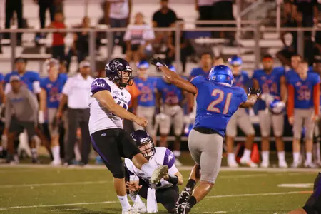 2013 (Freshman): Scored 86 points on 10 field goals and 56 extra points. Recorded a season-high 11 points with a 29-yard field goal and eight PAT’s in season-finale victory at Prairie View A&M. Finished the year 10-for-11 on field goal attempts with a long of 38 yards vs. Incarnate Word. Made 56 of 62 PATs, including 10-of-12 in season-opening win vs. Concordia (Ala.). Didn’t miss another extra point until Oct. 19 game vs. UIW, during which he missed one of four. Missed another two extra points in five-point loss at New Mexico State. Lone field goal miss was against New Mexico Highlands. Didn’t have any kicks blocked. Recorded 82 kickoffs, 24 of which were touchbacks and two that went out of bounds.
